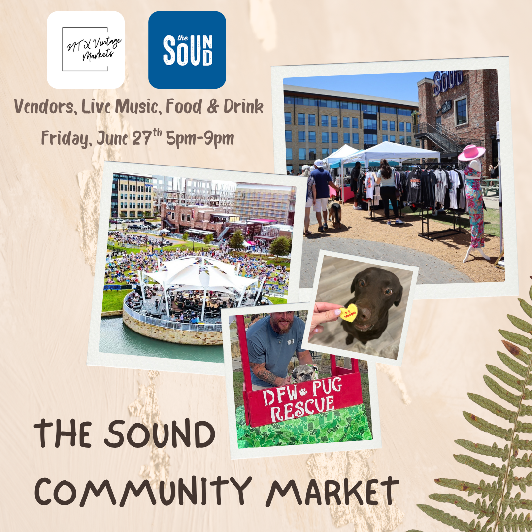 Come out and visit with DFW Pug Rescue Event Team as we join the Community Market at The Sound in Coppell. Hosted by NT Vintage Market, come visit DFW Pug Rescue Club booth and then check out the Community Market.