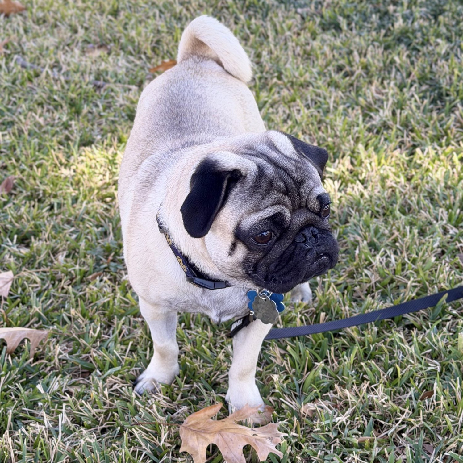 8-month-old Little Richard is a playful, fawn male pug bursting with joyful puppy energy and charm. He enjoys wrestling, tug-of-war, and tag with his dog friends, running around with kids, and staying close to his humans—whether that’s snuggling on the couch, supervising dinner prep from your feet, or asking you to join him outside for potty breaks. His adorable underbite only adds to his irresistible personality. Little Richard is house-trained, shares toys graciously and has lovely mealtime manners—he eats politely, takes treats gently. He’s crate-trained and improving each night, walks nicely on a leash, and is already learning “sit” and “come.” Toys are a big favorite, especially stuffies and chewers. Little Richard does great with other dogs and children of all ages. He could be an only dog if someone is home often but would also thrive with a playful canine companion. If you’re ready for puppy kisses, playful antics, and a loyal little shadow, Little Richard is ready to rock his way into your heart!