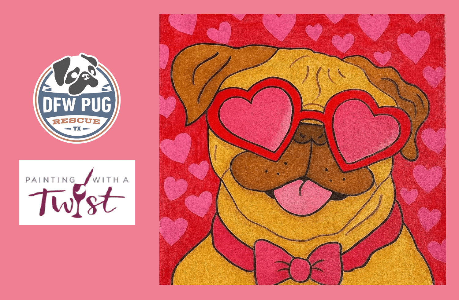 Join us at Painting With A Twist in Fort Worth from 1-3PM for a guided pug painting session!