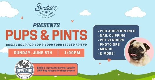 Fort Worth dads, this one is for you! Come celebrate your dad with us at Birdie's Social Club. Special surprise for all dads plus vendors, drink specials, food, photo op, and lots of pug fun!